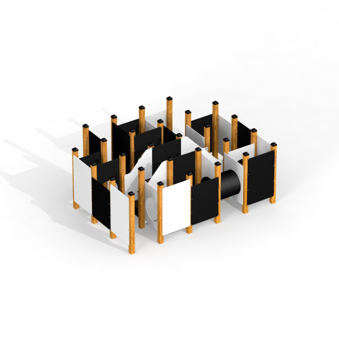 De combinatie van duurzaam larikshout, hoogwaardig HPL (High Pressure Laminate) en stevig PE (polyethyleen) garandeert een robuuste en weerbestendige constructie. Deze materialen zijn zorgvuldig geselecteerd om langdurig gebruik en intensief spel te weerstaan, terwijl ze ook onderhoudsvriendelijk blijven.