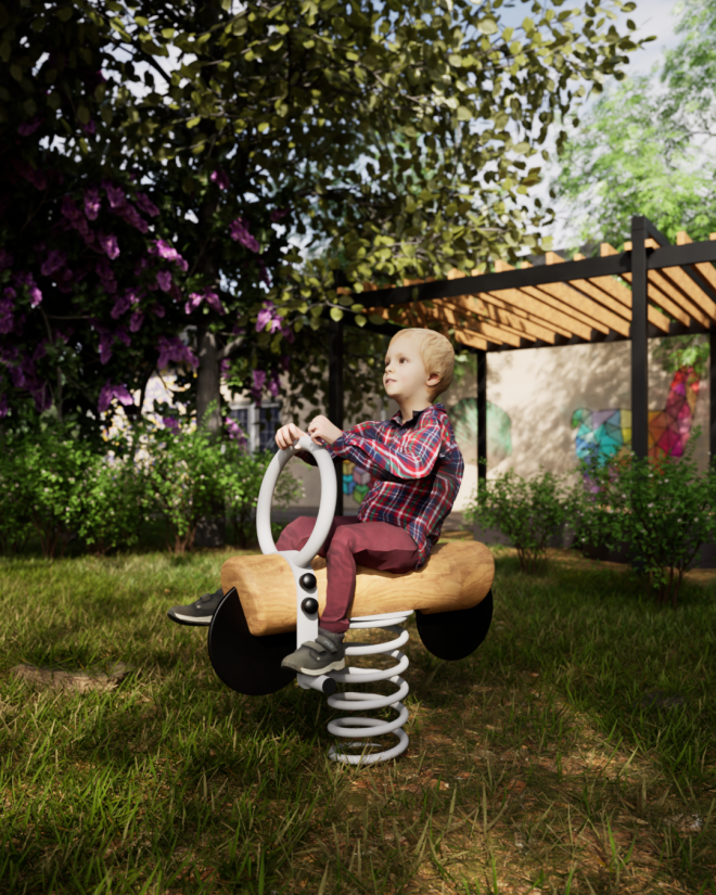 De Bike Spring Rider is perfect voor integratie in natuurlijke speelplekken, schoolpleinen en openbare parken. Dankzij het aantrekkelijke ontwerp en de duurzame materialen past het naadloos in groene omgevingen en stimuleert het kinderen om actief en creatief te spelen.