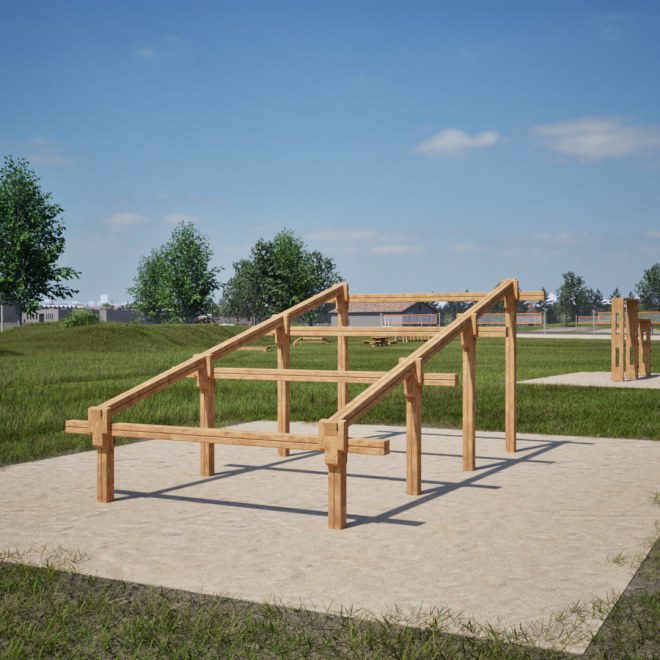 Deze klimmogelijkheid is perfect geïntegreerd in outdoor fitnessparken en speelplekken waar fysieke uitdaging en plezier centraal staan. Het stimuleert gebruikers om hun grenzen te verleggen en draagt bij aan een gezonde levensstijl in een natuurlijke omgeving.