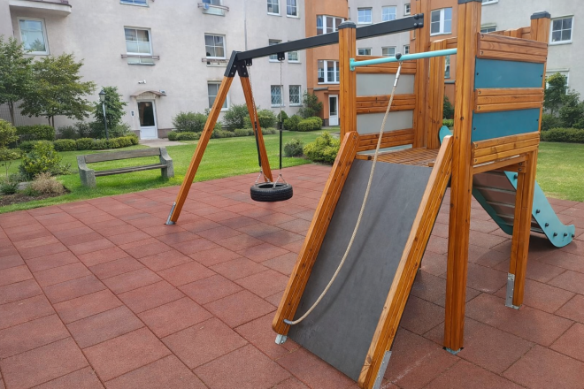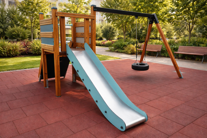 De combinatie van glijbaan en schommel maakt dit toestel ideaal voor diverse speelplaatsen, van scholen tot openbare parken. Het stimuleert zowel motorische vaardigheden als sociale interactie, waardoor kinderen op een plezierige en actieve manier kunnen spelen.