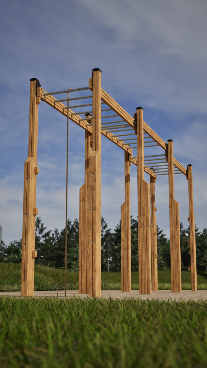 Dit klimrek is perfect geïntegreerd in buitenfitnesszones waar het uitnodigt tot actief bewegen en sociale interactie. Dankzij het duurzame materiaalgebruik en de doordachte constructie is het geschikt voor intensief dagelijks gebruik in diverse weersomstandigheden.