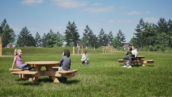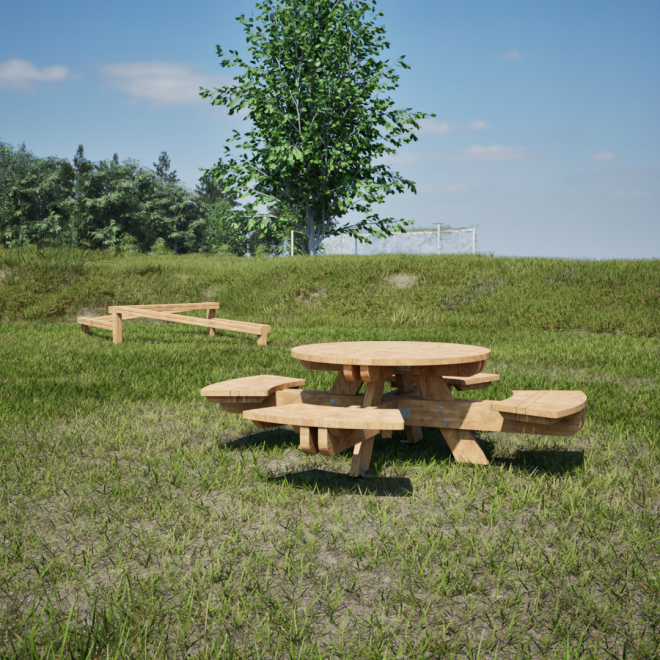 Round table & benches biedt een perfecte combinatie van functionaliteit en design, ideaal voor openbare ruimtes en recreatiegebieden waar comfort en duurzaamheid centraal staan.