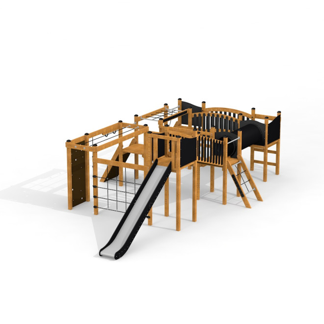 Ideaal voor openbare speeltuinen, scholen en recreatiegebieden waar kinderen worden uitgedaagd om actief te zijn en samen te spelen. Het ontwerp stimuleert zowel fysieke activiteit als sociale interactie, waardoor het een waardevolle aanvulling is op elke buitenruimte.